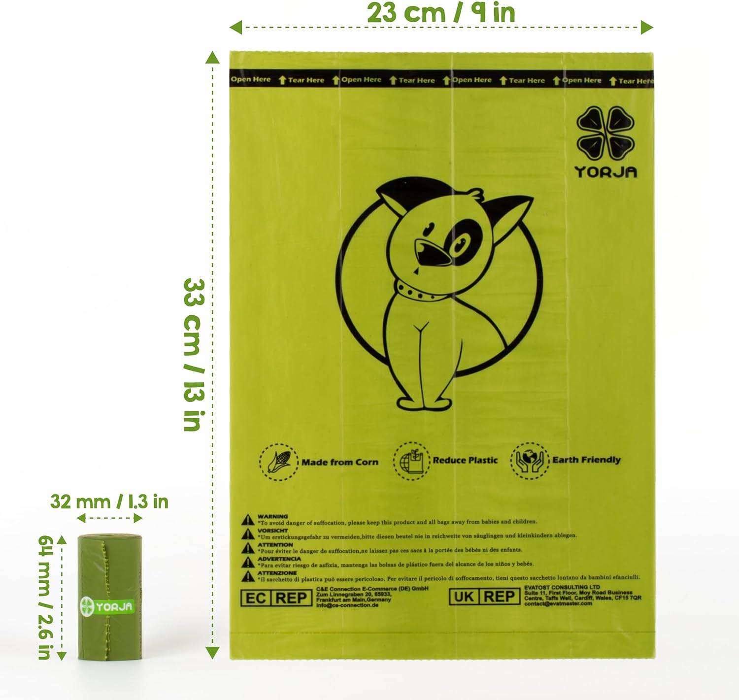 YORJA Dog Poop Bags Rolls, 360 Pet Waste Bags, 100% Leak Proof Extra Thick and Strong Corn Starch Blend