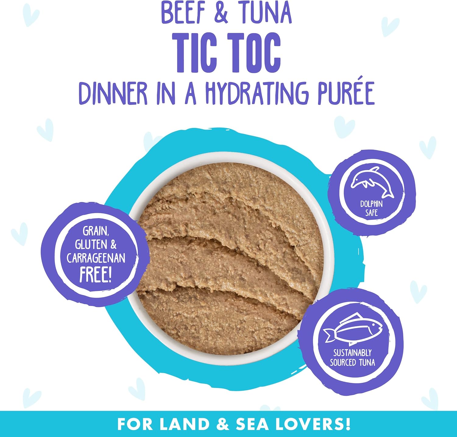 - Beef & Tuna Tic Toc (2.8oz Can, Pack of 12) Grass-fed beef and red-meat tuna gently pureed into a creamy and delicious paté!