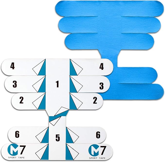M7 Sport Kinesiology Ankle Tape for Ankle Sprain and Injury Recovery, Pain Relief Therapeutic Tape, Ankle Brace Compression Support, Plantar Fasciitis, Waterproof, Eases Swelling (Blue, 4-Pack)