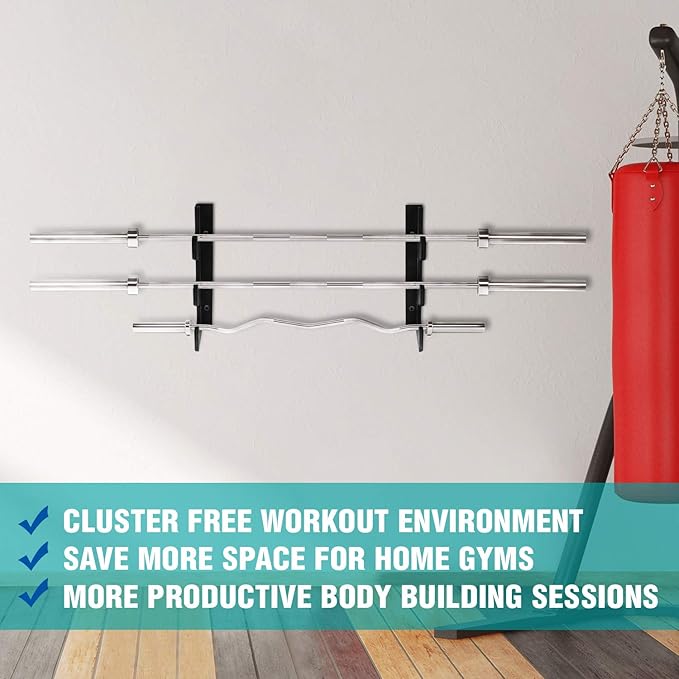 - VERSATILE BAR RACK: Designed to give ample space and fit well most of the barbells including Olympic/standard weight bar, 20 kg, 15 kg, short bars, Aluminum training bars and even axle bars