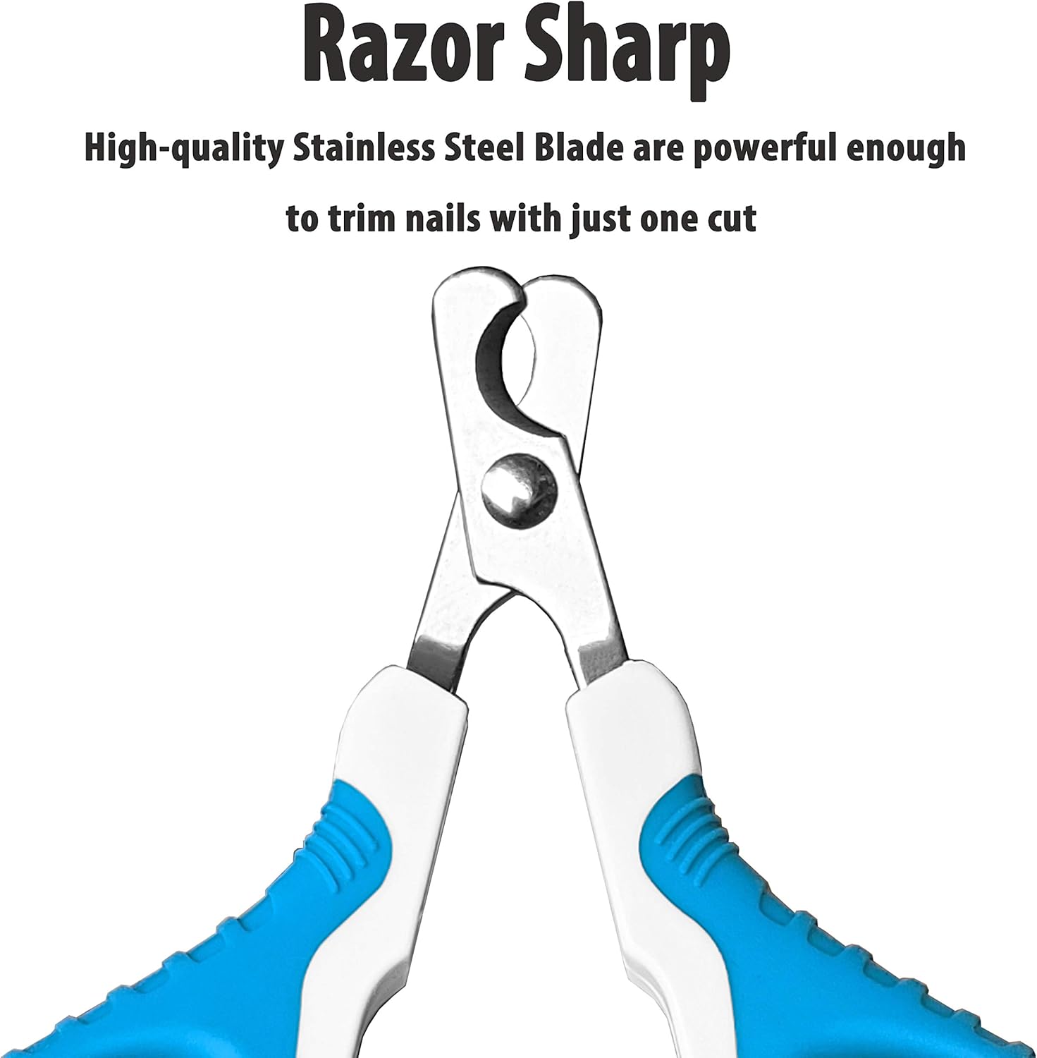 - Specially Semi-circular Angled Blade - The pet nail trimmers is professional designed with a semi-circular angled blade. You'll be able to see what you're doing and help you determine how much you need to trim without going near the sensitive spots and avoid a bloody mess even without a quick sensor.