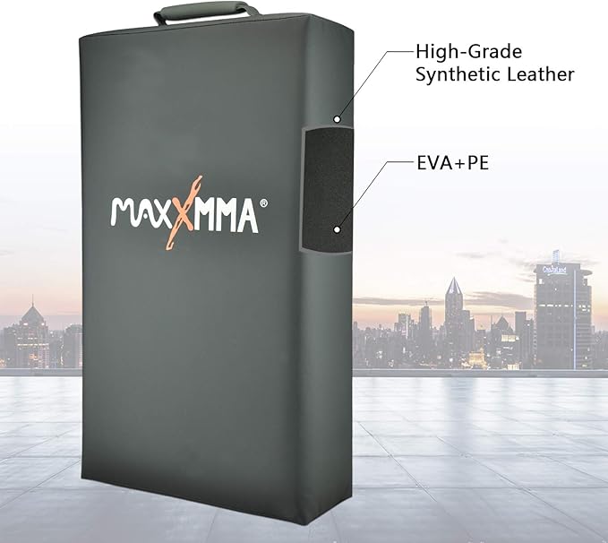 MaxxMMA Kick Shield, Boxing Punching Pad Kickboxing Muay Thai Training Foot Target Strike Body Shield, Great for MMA, TKD, Krav MAGA, Martial Arts, Karate Workout (Black)