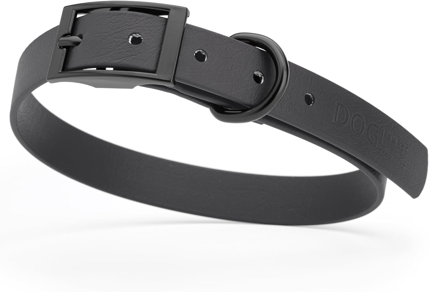 Dogline Biothane Waterproof Dog Collar Strong Coated Nylon Webbing with Black Hardware Odor- Proof for Easy Care Easy to Clean High Performance Fits Small Medium or Large Dogs, Black