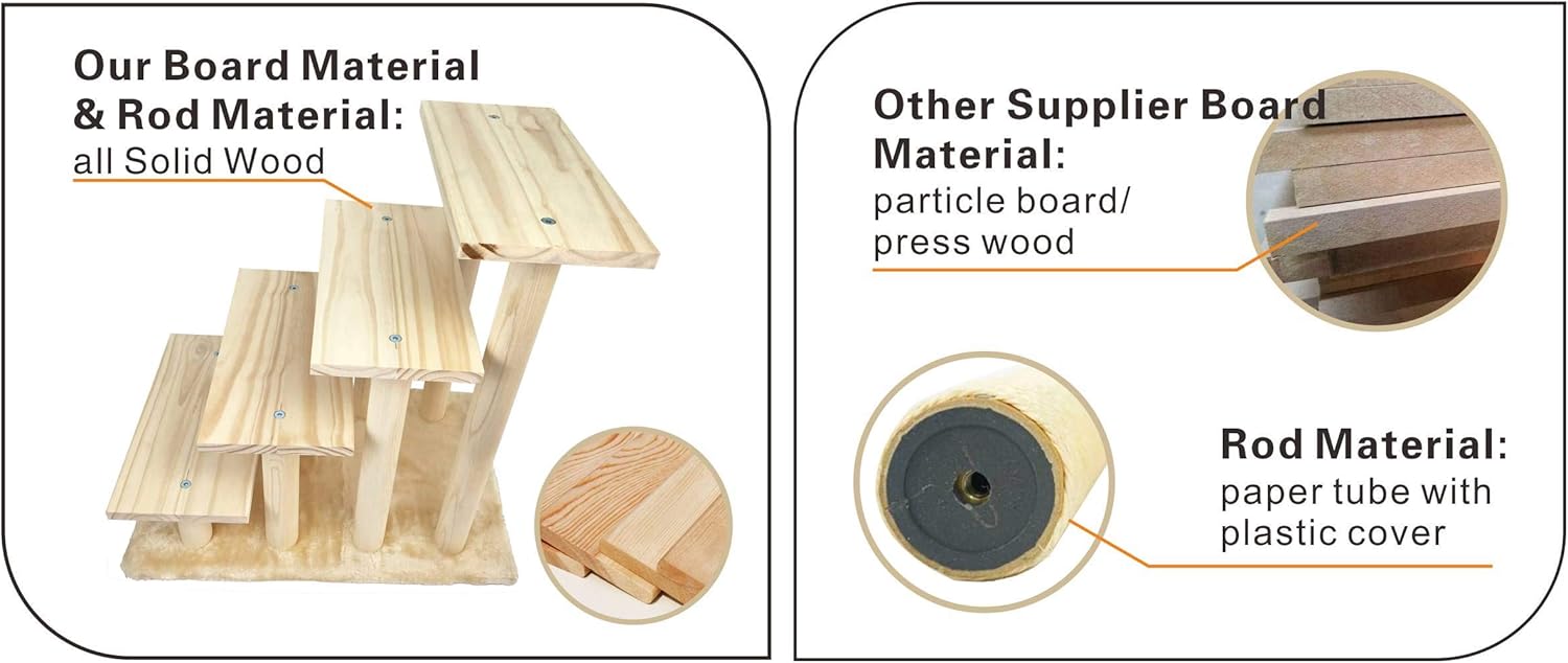 - 1.This pet steps is made from USA natural pinewood, no formaldehyde and bad smell, more sturdy and durable; covered with detachable carpet, easy to clean & wash.