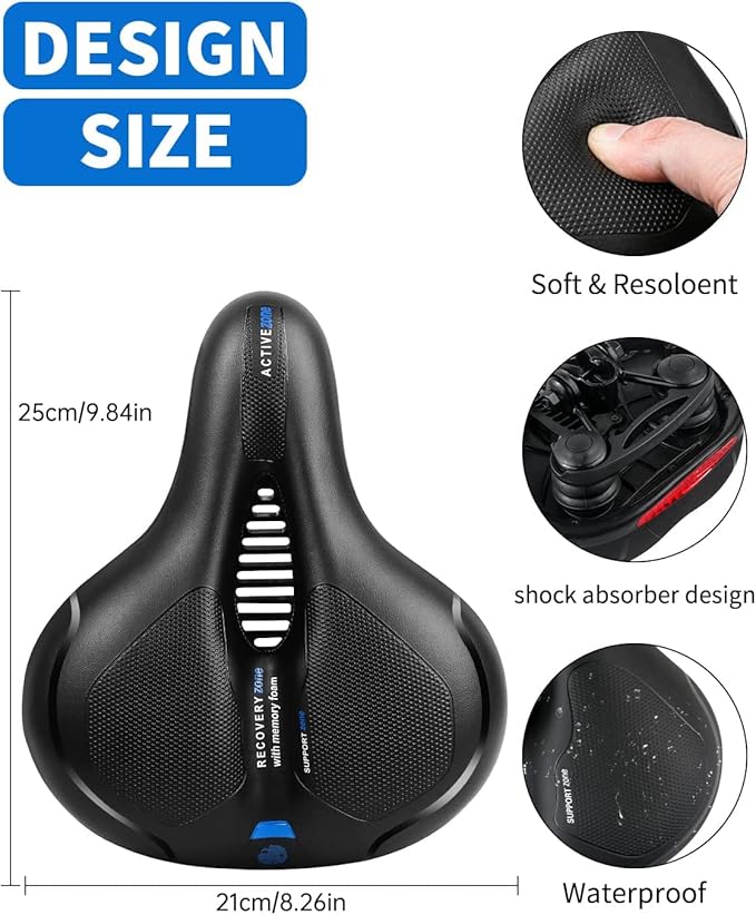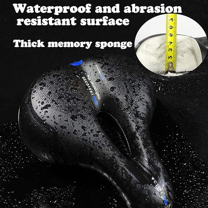 MSDADA Comfortable Bike Seat Cushion - Wide Bicycle Seat Comfort for Men Women with Dual Shock Absorption - Memory Foam Padding, Waterproof Bike Saddle for Stationary, Exercise, Mountain, Road Bikes