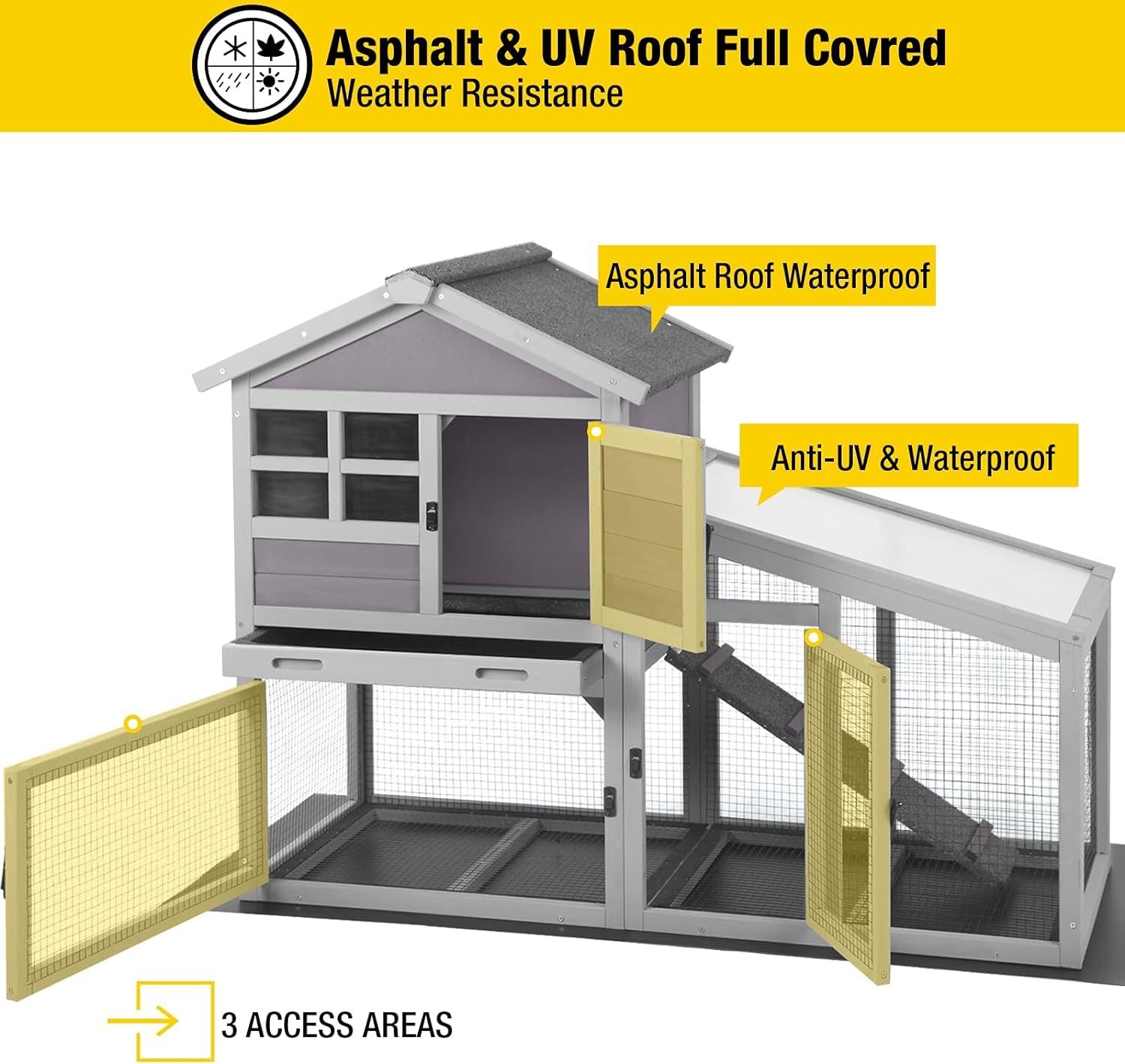 - 【 ASPHALT ROOF & UV PANEL】Waterproof Asphalt roof !100% UV proof run panel.Protect the chicken,poultry,bunny,from UV & rainny,and enjoy sunnylight.The 2 concave slats helps to flow out water fully.