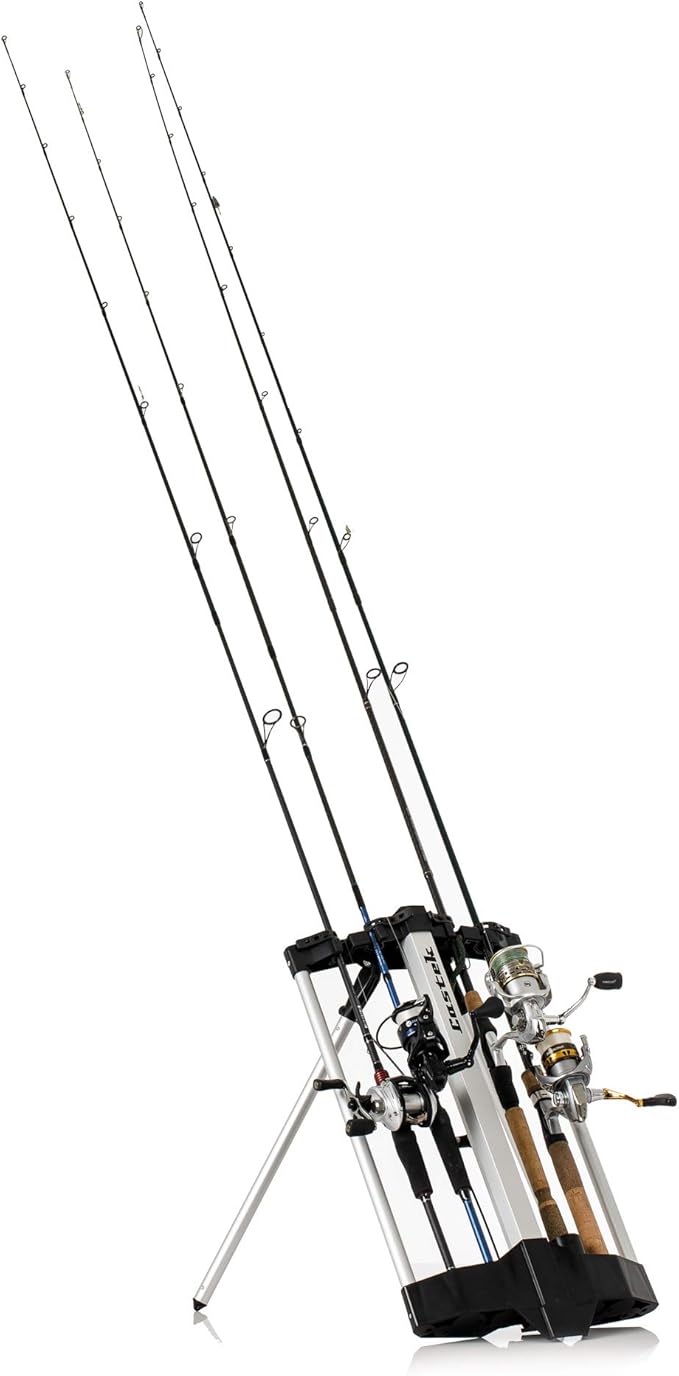 - Holds up to 4 freshwater rods and reels including spinning, baitcasting, fly rods, ice fishing, etc. MEASURE YOUR RODS FOR FIT: If your rod measures 1/2" in diameter or less at a distance 18" from the bottom it will fit