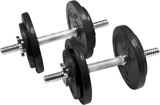 - Set includes – 50 pounds Total: two 14” dumbbell handles, four 3-pound plates, four 7. 5-Pound plates, and four star-lock collars. Great for targeting Individual muscle groups or incorporating into a full body workout.