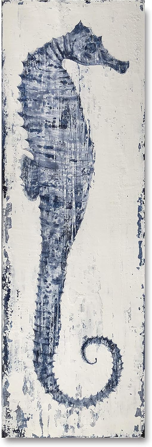 Yihui Arts Ocean Life Theme Bathroom Decor Mediterranean Style Home Canvas Wall Art Watercolor Painting Beach Marine Sea Animal Seahorse Print Framed Stretched Pictures