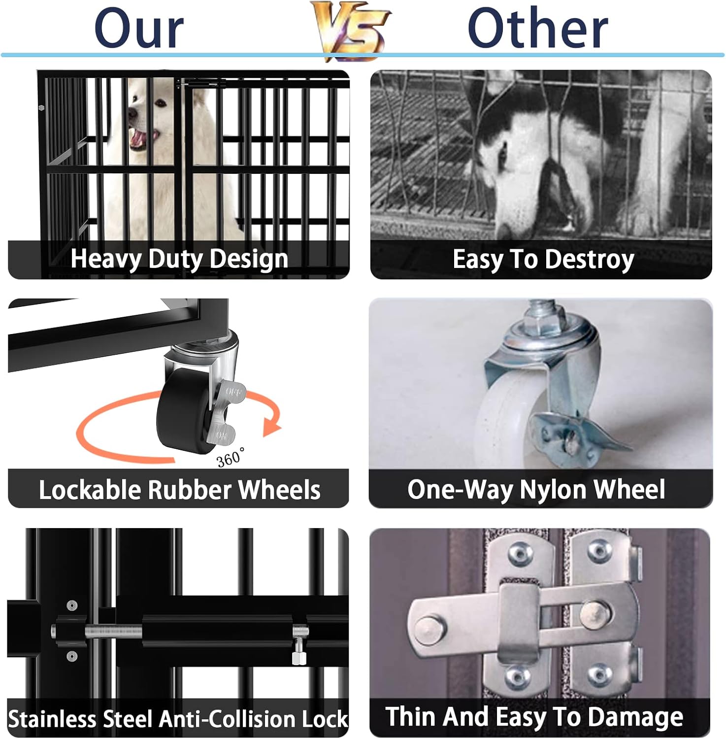 LEMBERI 48/38 inch Heavy Duty Indestructible Dog Crate, Escape Proof Dog Cage Kennel with Lockable Wheels,High Anxiety Double Door Dog Crate,Extra Large Crate Indoor for Large Dog with Removable Tray