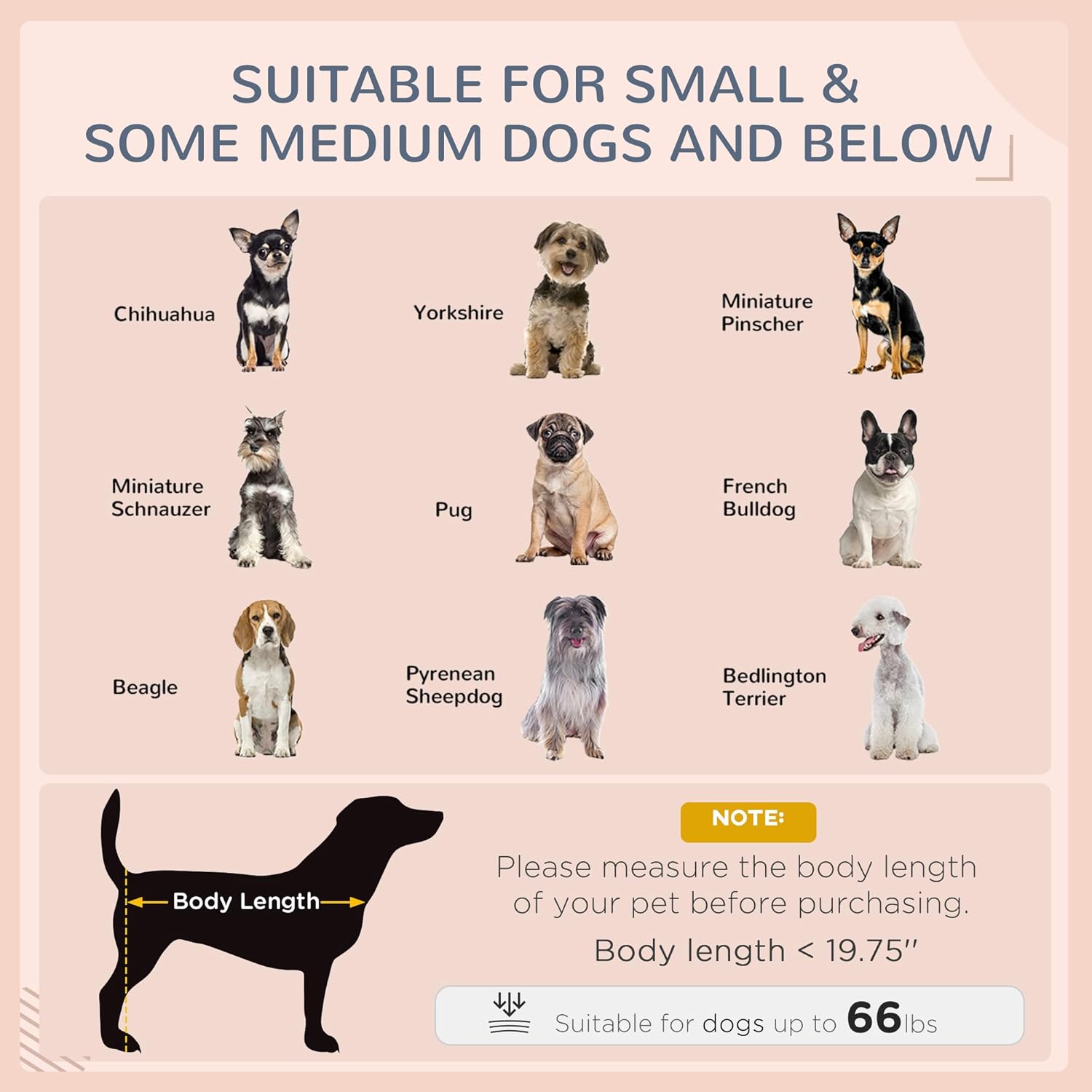 - Wicker Dog Bed Information: Overall Dimensions: 38.5" L x 27.25" W x 27.5" H. Bed Size: 31.5" L x 26.5" W. Weight Capacity: 110 lbs. Suitable for small to medium-sized dogs, such as Bichon Frise, Boston Terrier, Pyrenean Sheepdog, Bedlington Terrier.