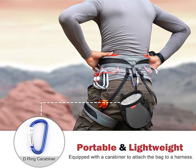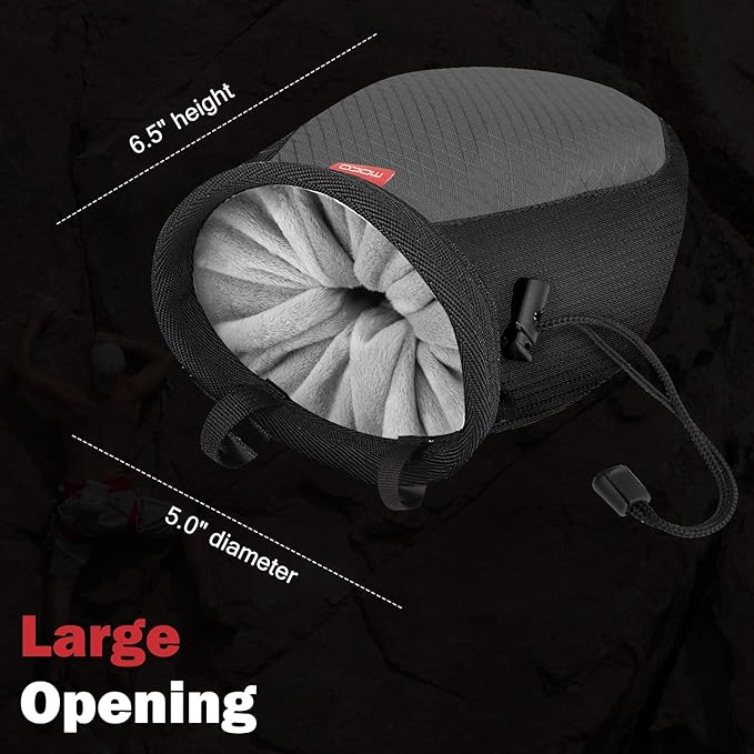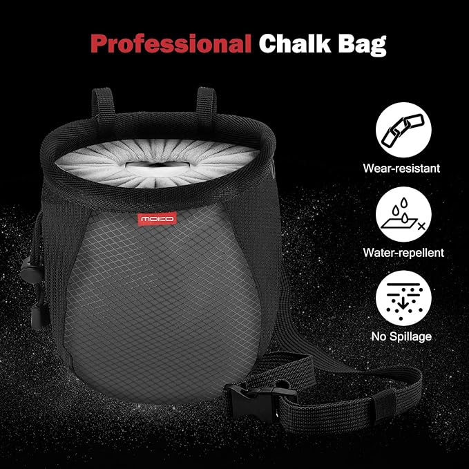MoKo Rock Climbing Chalk Bag, Bouldering Chalk Pot Bucket with Adjustable Belt & Carabiner Drawstring Climbing Gear