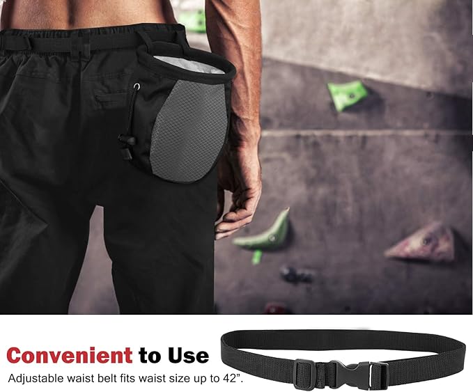 - HIGH-QUALITY: The top quality chalk bag is made of nylon material and come with soft inner. Wear-resistant and water-repellent.