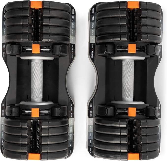 - [Smooth Weight Selector] - Adjust each Select-A-Weight dumbbell in 2.5, 5, and 10 lb increments to dial in the perfect resistance for each exercise. Train your entire body with these versatile adjustable dumbbells.
