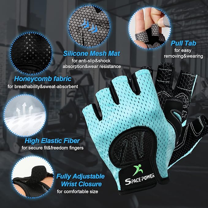 spacepower Workout Gloves - Lightweight Breathable Gym Gloves for Women & Men's Exercise