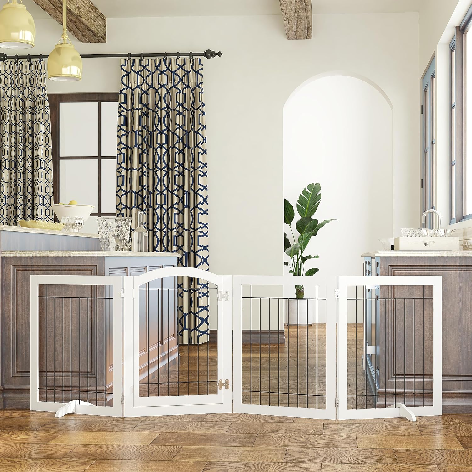 - DURABLE & ATTRACTIVE: Those Pet Panels Constructed from A Durable Solid Wood Frame and Strong Mental Wire Interior. It's Perfect For Especially Large Dogs or A Puppy Who Like To Chew On Everything, Yet The Pet Gate Fit Beautifully in Any Home DeCor.