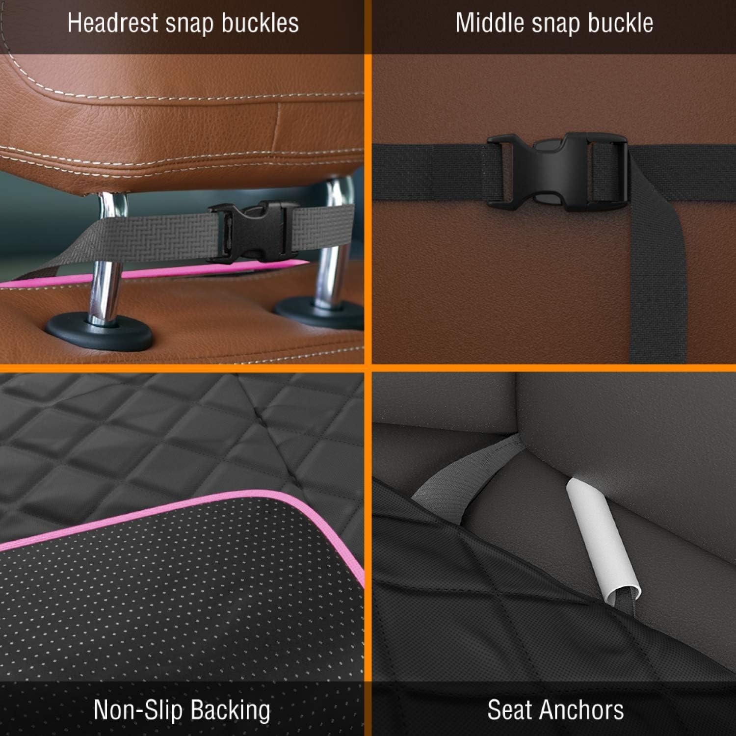 - SAFETY FIRST! - Active Pets uses 4 levels of security protection to keep your pet safe! This amazing front car seat cover for dogs defines a whole new level of safety: one heavy-duty buckle for the headrest, and one for the backrest to make sure your dog front car seat cover is always secured in its place, and a seat anchor and non-slip bottom to ensure that your pet will never slide around!
