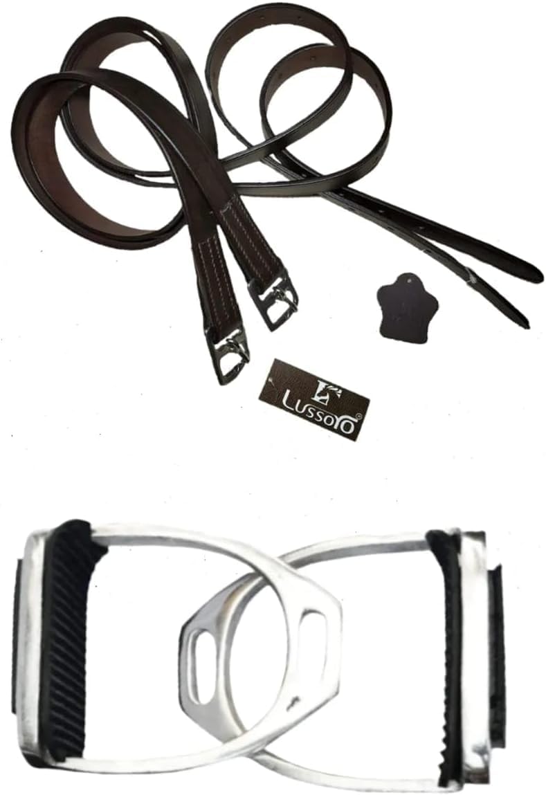 • Lussoro 7 pcs combo Pack Color Brown Product List Saddle, Bridle with Reins, Saddle Pad, leather Stirrups, Foot Stirrups, Girths, Bit