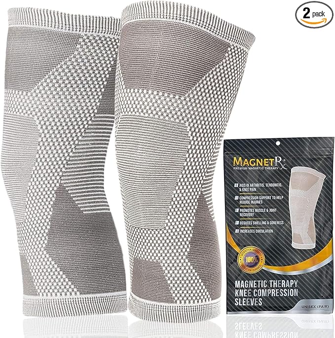 MagnetRX® Magnetic Knee Sleeve – (2-Pack) Effective Compression Knee Brace with Magnets for Knee Comfort & Recovery – Magnetic Knee Brace Support (Medium)