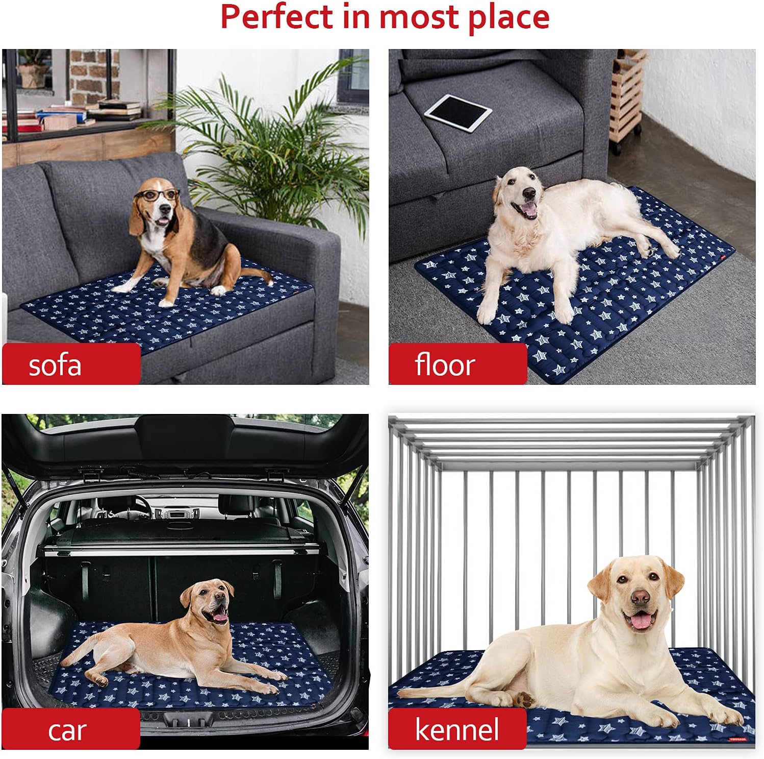 Dog Crate Mat (30" X 19"), Soft Dog Bed Mat with Cute Prints, Personalized Crate Pad, Anti-Slip Bottom, Machine Washable Kennel Pad, Navy