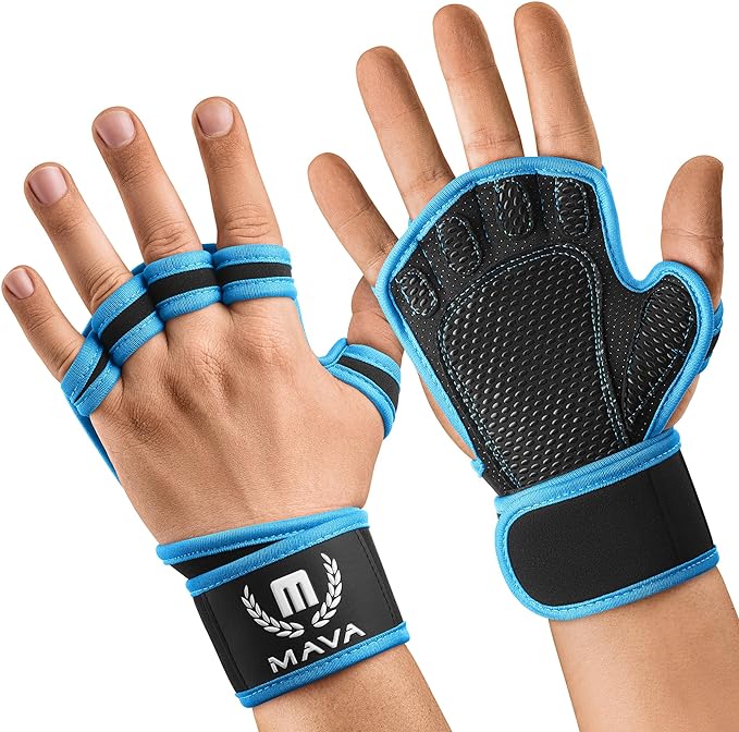 MAVA Open Gym Gloves for Men & Women; Padded Weight Lifting Gloves with Wrist Support for Comfort, Protection; Strong-Grip Fingerless Workout Gloves for Men & Women; Anti-Sweat Gym Accessories