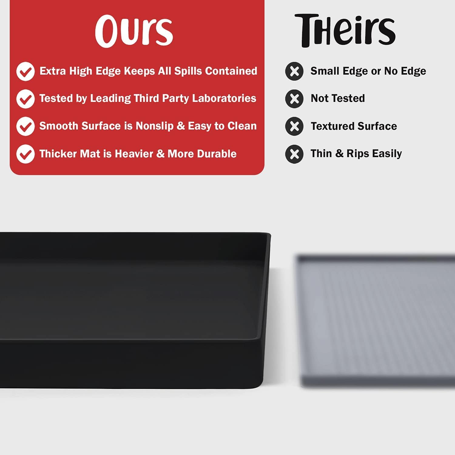 - Less Mess & Less Stress: Super high edge (0.6”) of DogBuddy Dog Food Mat keeps the spilled food and water on the mat and away from your beautiful floor. Silicone is naturally 100% waterproof, so what happens on the mat stays on the mat.