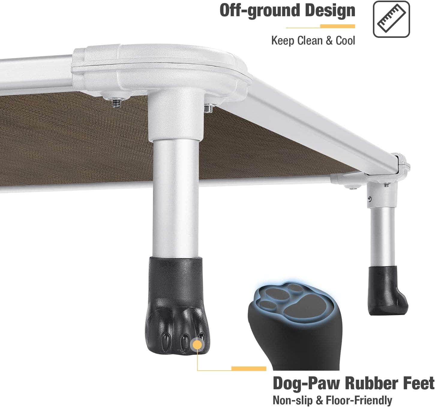 Veehoo Chew Proof Elevated Dog Bed - Cooling Raised Pet Cot - Silver Aluminum Frame and Durable Textilene Mesh Fabric, Unique Designed No-Slip Feet for Indoor or Outdoor Use, Brown, Medium, CWC2003