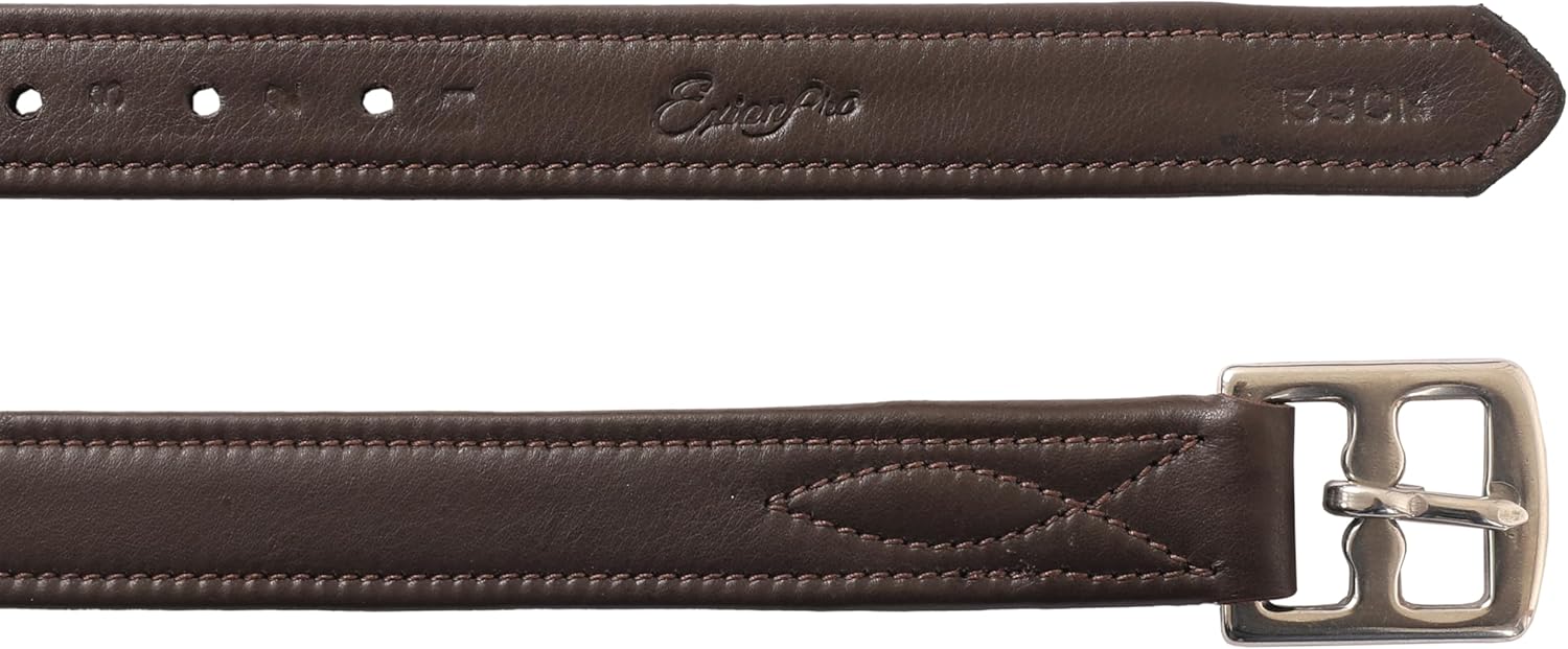 Exion FlexiStrong Stirrup Leathers for English Saddles – 1" Premium Calfskin with Nylon Core – Numbered Holes, Stainless Steel Buckles – Black/Brown – Horse Riding Gear (48"/120cm to 62"/155cm)