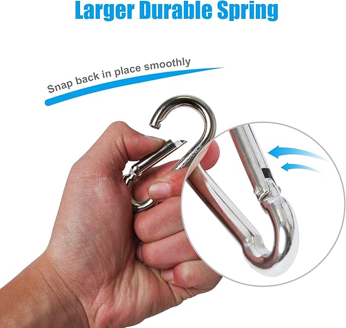 - Easy to use: package includes 4 pcs carabiner, features a spring-loaded door design, that opens and closes smoothly like a spring and makes it easy to connect any installed accessories