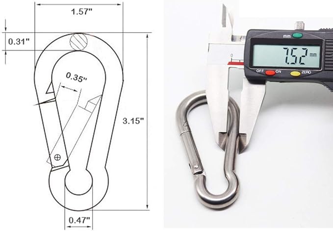 - 【Package Contents】 - You will get 2 packs 3.15 inches heavy duty spring snap carabiner, the Length: 3.15 inch (80 mm), and the Width: 1.6 inch (40 mm), which is large enough for gym exercise purpose.