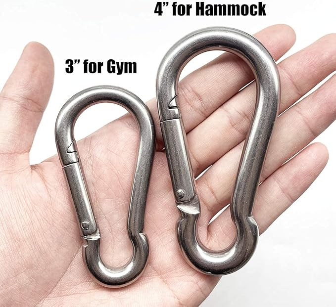 3.15 Inches 4 Inches Stainless Steel Carabiner for Gym Equipment Connection, EFFIET Heavy Duty Spring Snap Hook Clips Buckle for Gym Exercise, Punching Bags, Hiking, Camping