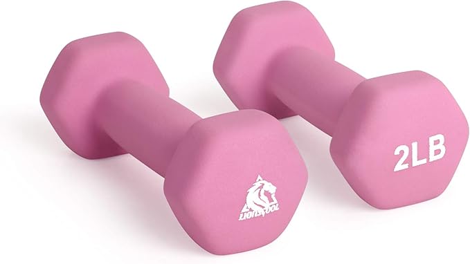 LIONSCOOL Set of 2 Neoprene Coated Dumbbell Hand Weights, Anti-Slip and Anti-Roll Hex Dumbbells in Pair for Strength Training, Resistance Training