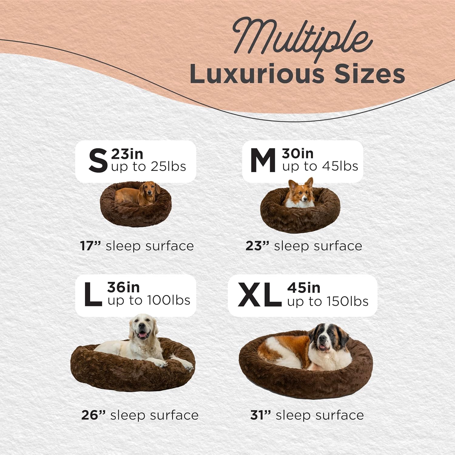- Calming Dog Bed: 36-inch donut cuddler provides a cozy haven to help soothe anxiety and stress in large dogs up to 100 lbs; breeds such as Australian Shepherd, Husky, Border Collie, Labrador or Golden Retriever, German Shepherd, Boxer, Poodle, Dalmatian