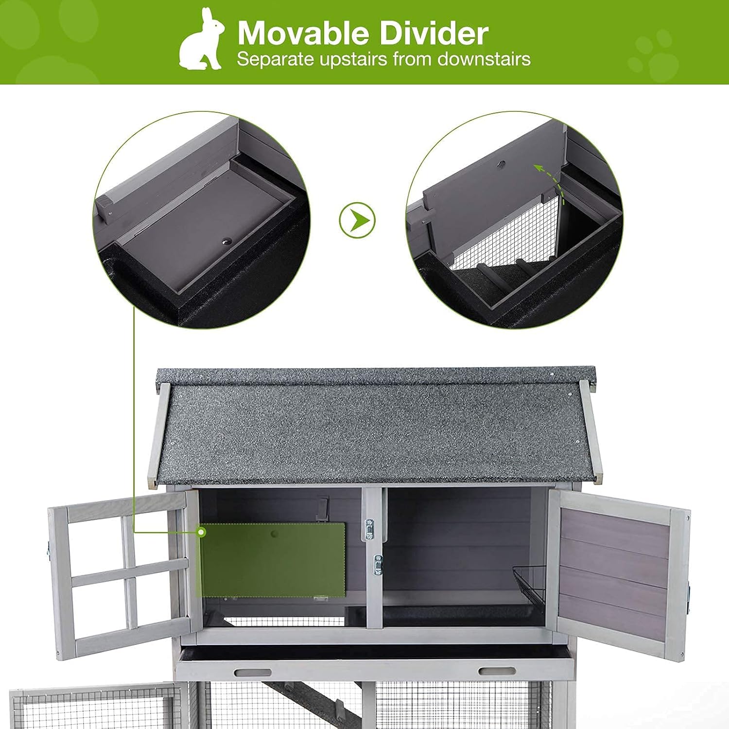 - 【UPGRADE Bottom wire netting 】Bunny hutch Upgrade with Removable bottom wire-netting above the bottom tray to separate the urine & poop, also will avoid the pets escape when the tray pulls out.