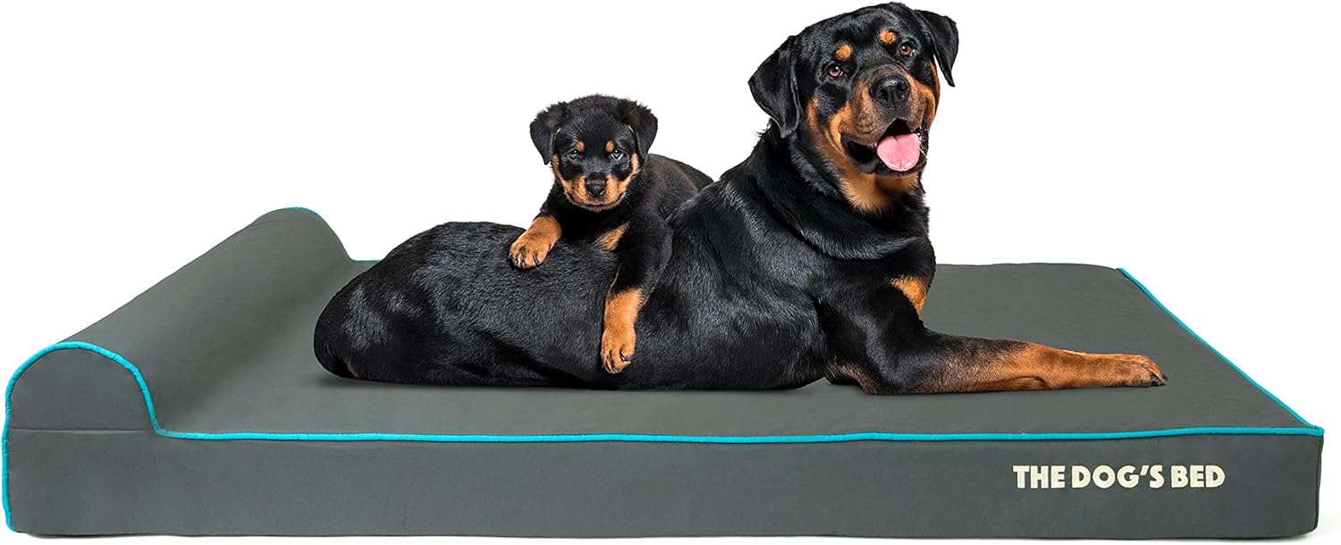 The Dog’s Bed Orthopedic Headrest Dog Bed XXL Grey/Blue 54x36, Memory Foam, Pain Relief for Arthritis, Hip & Elbow Dysplasia, Post Surgery, Lameness, Veterinary Approved, Waterproof Washable Cover