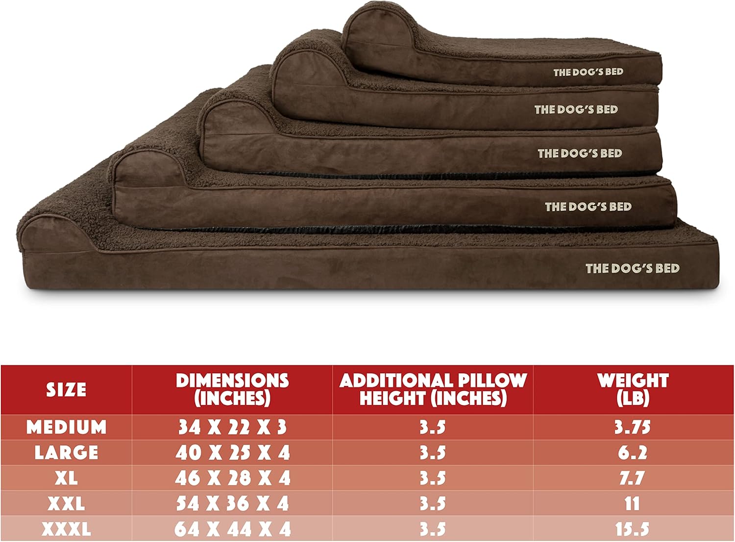 - XL Brown Plush 46” x 28” x 4” (+3.5" Headrest) waterproof orthopedic headrest dog bed. Solid 2” high density, orthopedic memory foam over a solid 2” base of high stability support foam with covers designed so that your bed fits your home decor seamlessly and your dog can stay close to your family