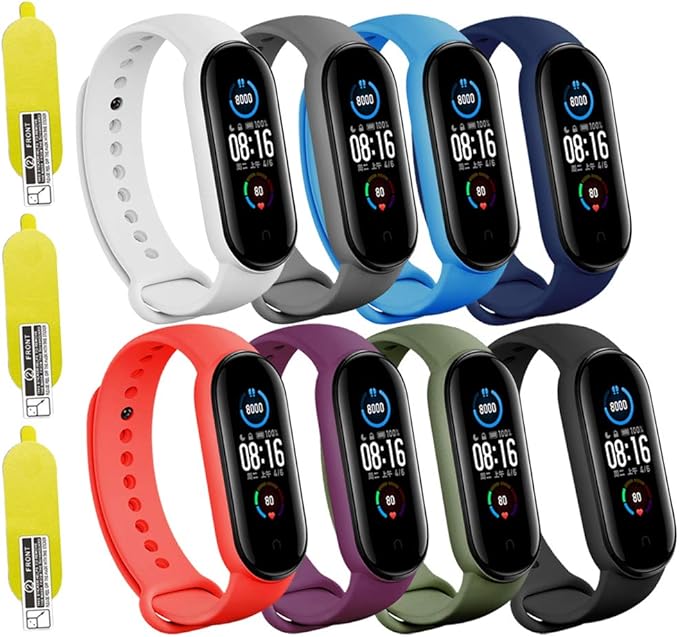 (8 PACK) Mi 5 & 6 Strap Replacement Bracelets with three FREE Screen Protectors , Skin-Friendly Soft & Flexible Silicone Mi 5 & 6 Strap Wristbands for Male and Female