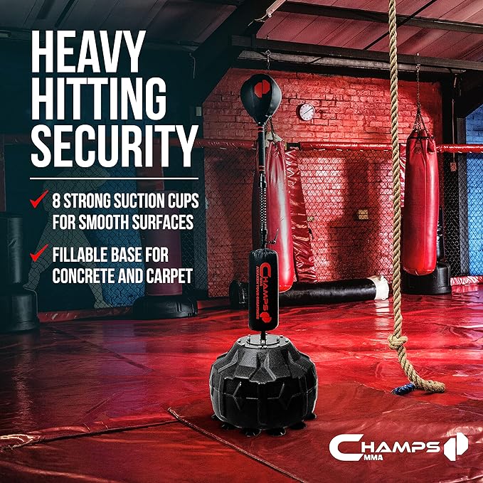 - Secure on All Floors – Sharpen your skills no matter where you train. With 8 strong suction cups, your boxing reflex bag easily attaches to hard surfaces. For carpets and concrete, fill with water or sand.
