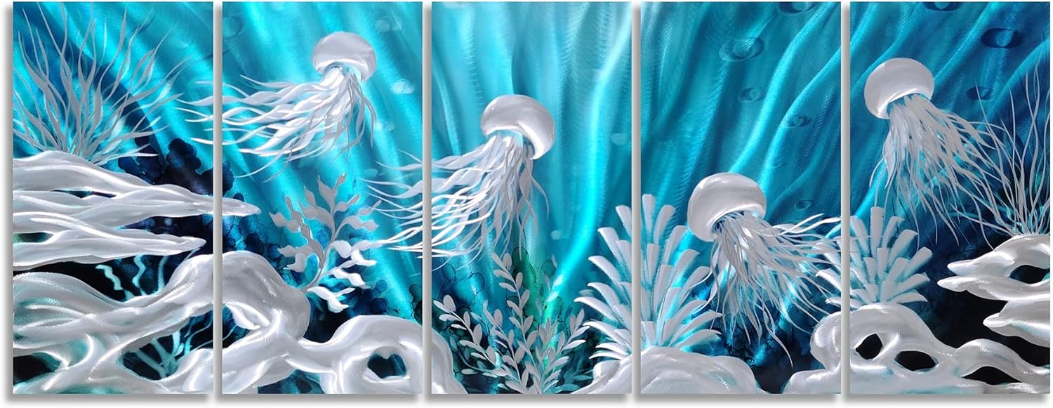 - Jelly Fish Metal Wall Art, Hand Grind on Aluminum with 3D, will complement contemporary, modern, or traditional home décor and comes to life in light!