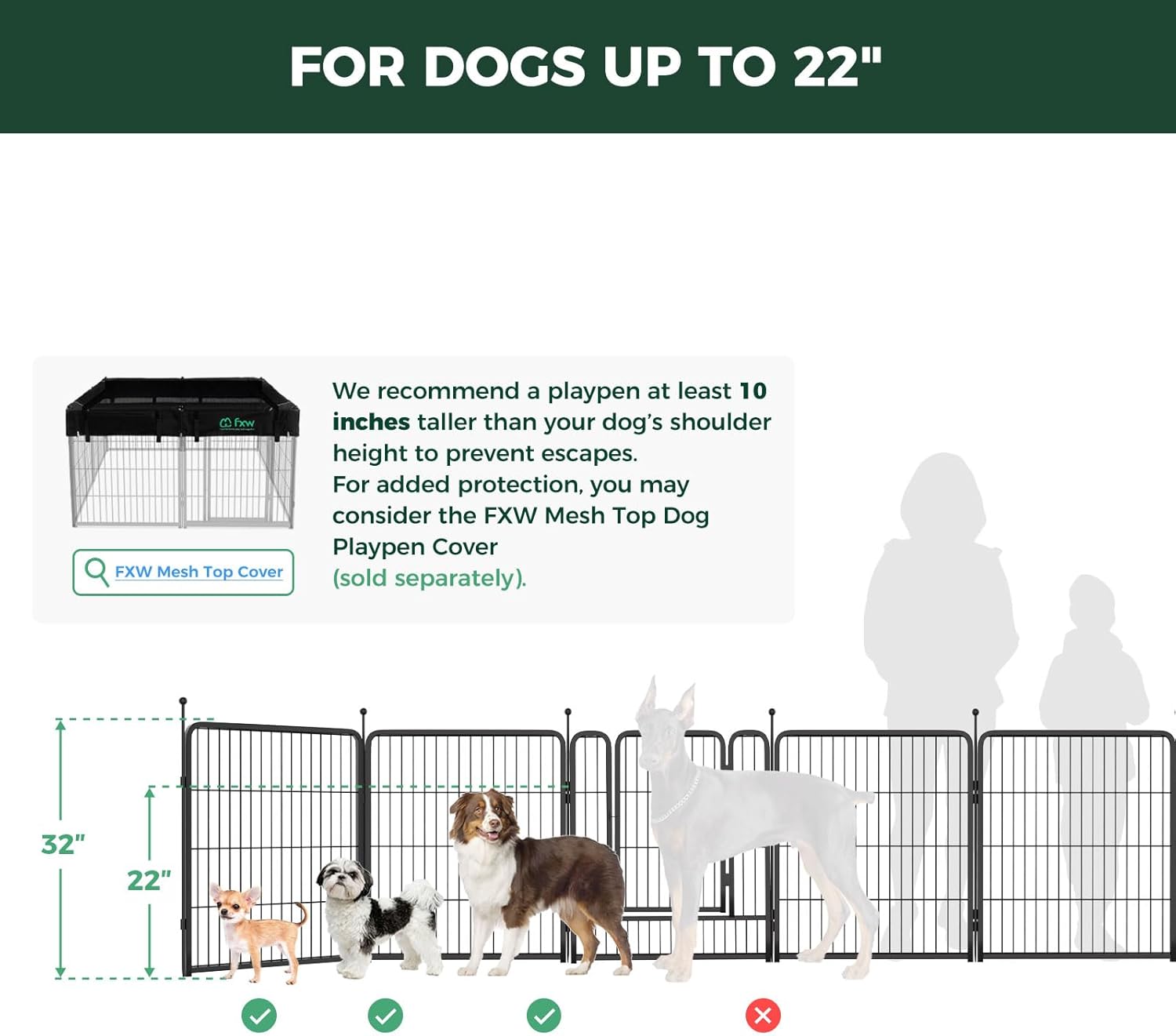 FXW Rollick Unleashed Dog Playpen for Indoor, Yard, RV Camping, 32 inch 24 Panels for Small and Medium Dogs, Black│Patented