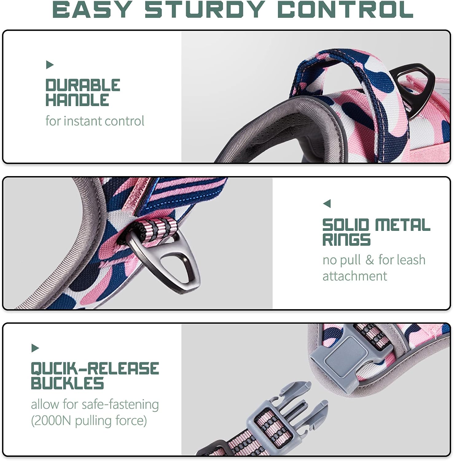 BUMBIN Tactical Dog Harness for Small Dogs No Pull, Famous TIK Tok No Pull Puppy Harness, Fit Smart Reflective Pet Walking Harness for Training, Adjustable Dog Vest Harness with Handle Pink Camo S