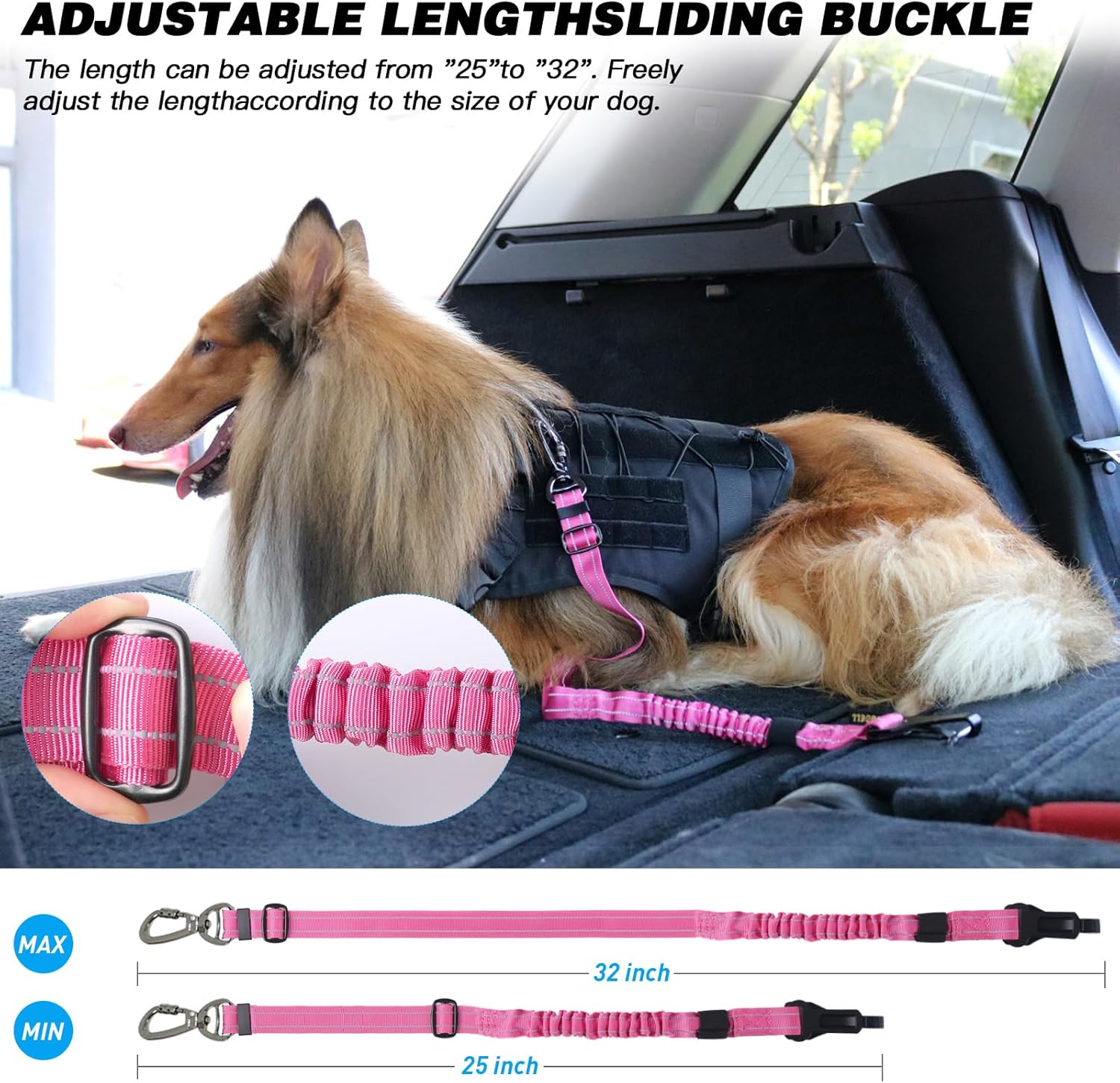 AUBELL Dog Seat Belt for Car,Updated 3-in-1 Adjustable Reflective Bungee Heavy Duty Dog Car Harness Tether with Clip Hook Latch & Buckle,Swivel Zinc Alloy Carabiner,Hotpink