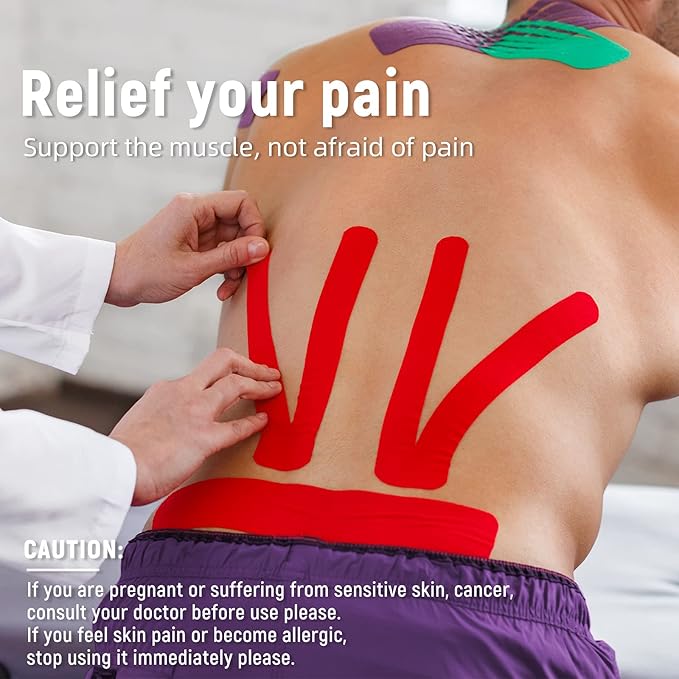 - ⚽️【Faster Recovery】Reduce tissue pressure and support muscles and joints, helping you recover from pain faster. Kinesiology tape is used for knees, shoulders, back, soles, elbows, etc.