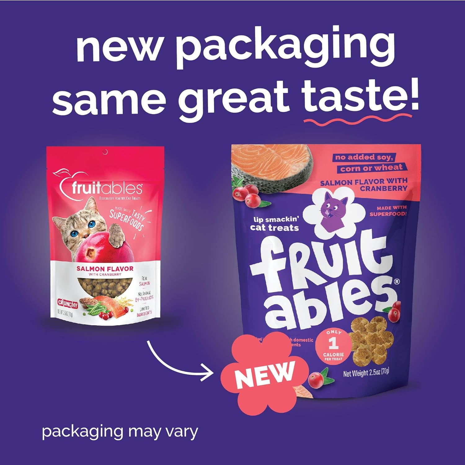 Fruitables Cat Treats Crunchy Salmon & Cranberry Cat Treats Healthy Low Calorie, High Protein Wheat, Corn & Soy Free 30 Ounces