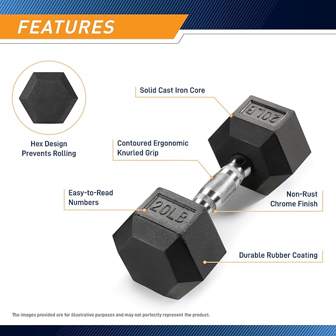 Marcy Rubber Hex Dumbbell Sold in Pairs - Available for 5lb - 20lb