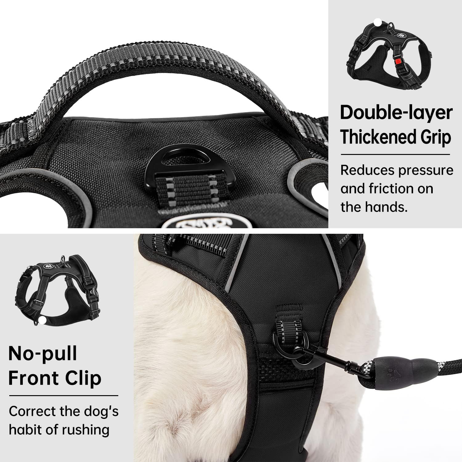 IVY&LANE No Pull Dog Harness for Medium Dogs, Dog Vest Harness with Leash, Safety Belt and Storage Strap, Fully Adjustable Harness, 360° Reflective Strip, Soft Handle (Black, M)