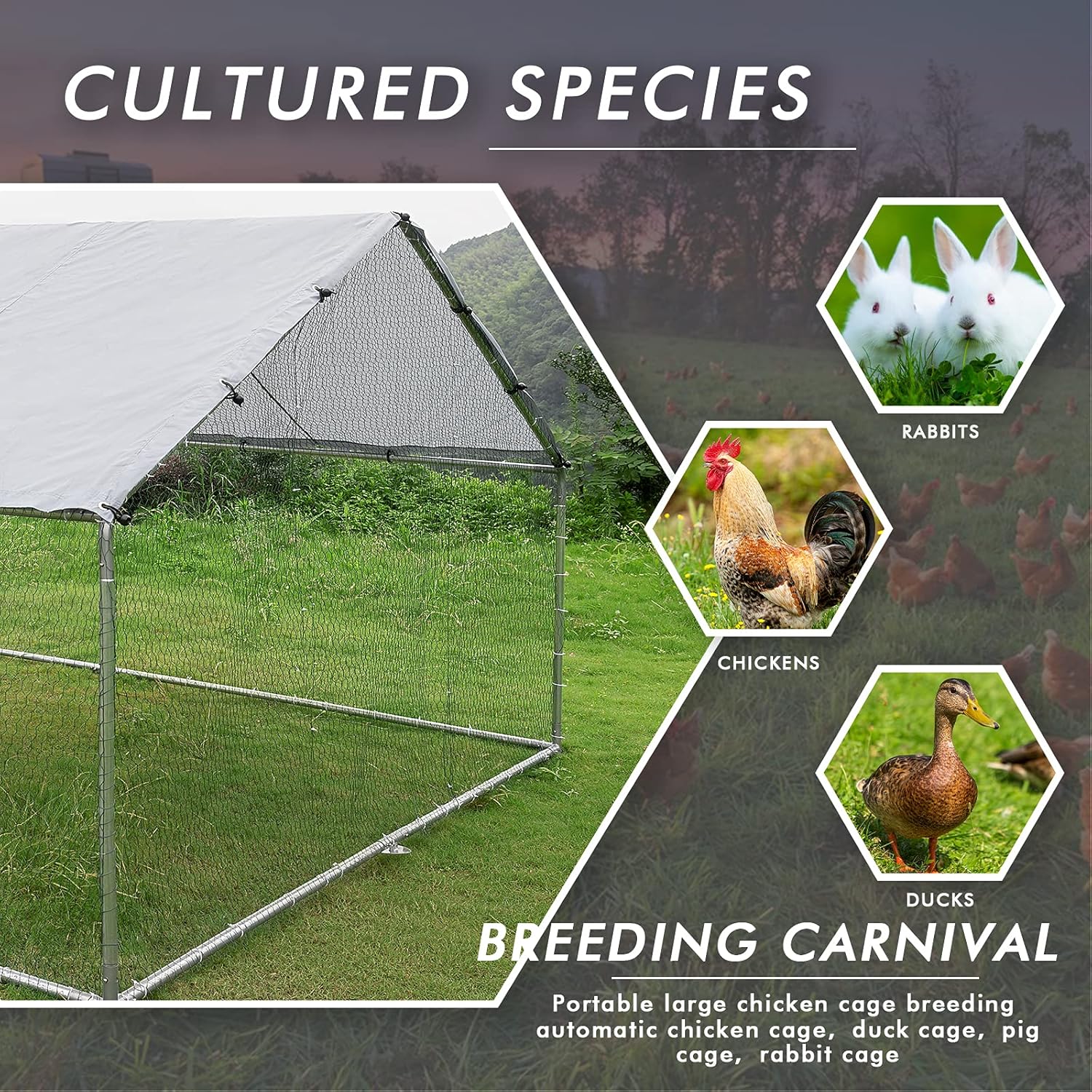 - Large Poultry cage: The coop size is 19.6’ L×9.84’ W× 6.4’ H, Enough for someone to walk in. The large coop is big enough to hold more than 30 chickens