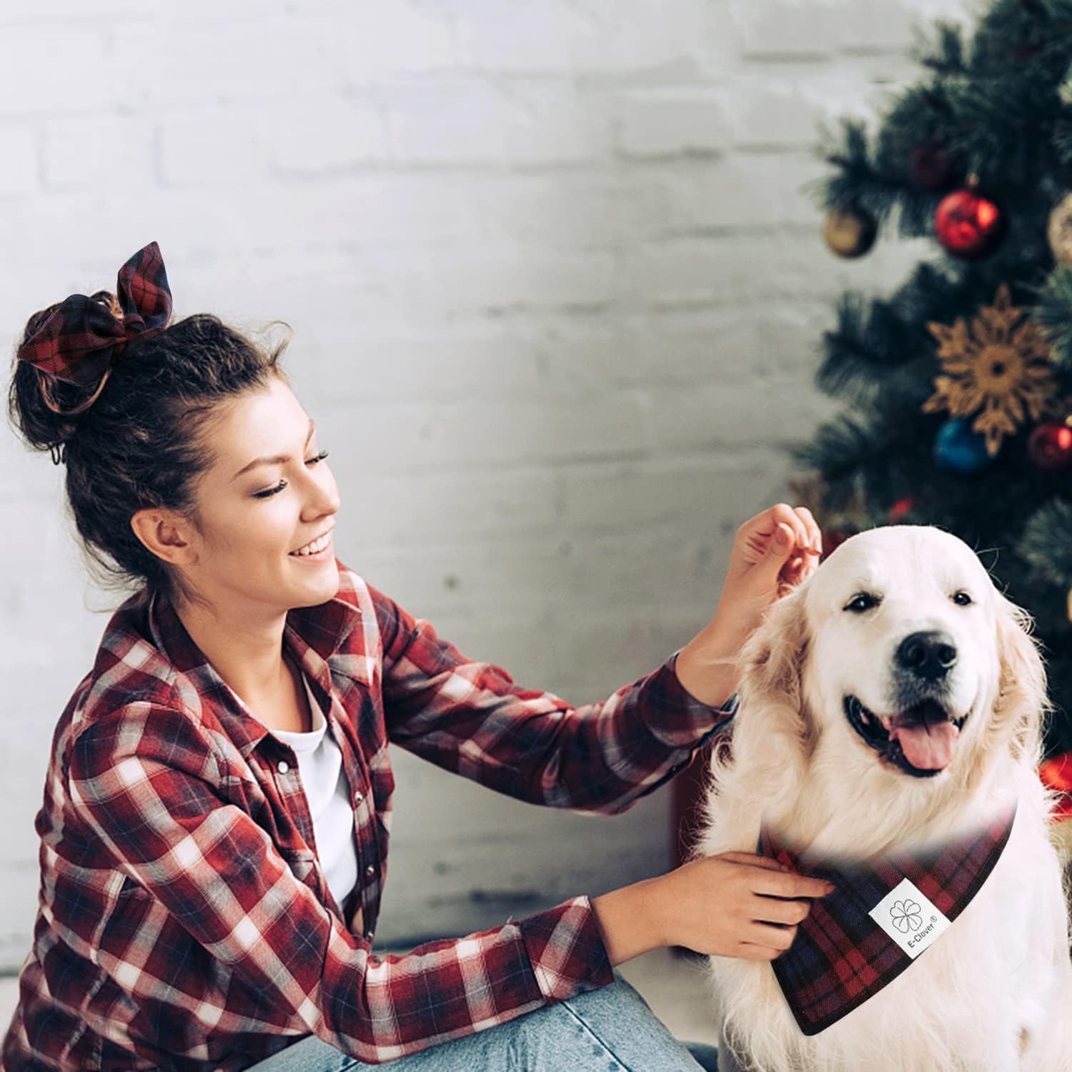 - Matching Bandana and Scrunchie Set - It’s full of love when your pets is wearing the dog handkerchief bandana and you are wearing the bow scrunchies. When traveling, sleeping, taking photos or daily walking, adorable dog bandana girl and plaid scrunchie is a pretty accessories. The scrunchie can be worn as a wrist accessory and hold your hair. Beautiful dog drool bibs and bow scrunchie with red and blue tartan pattern, it’s nice photo props for holiday.