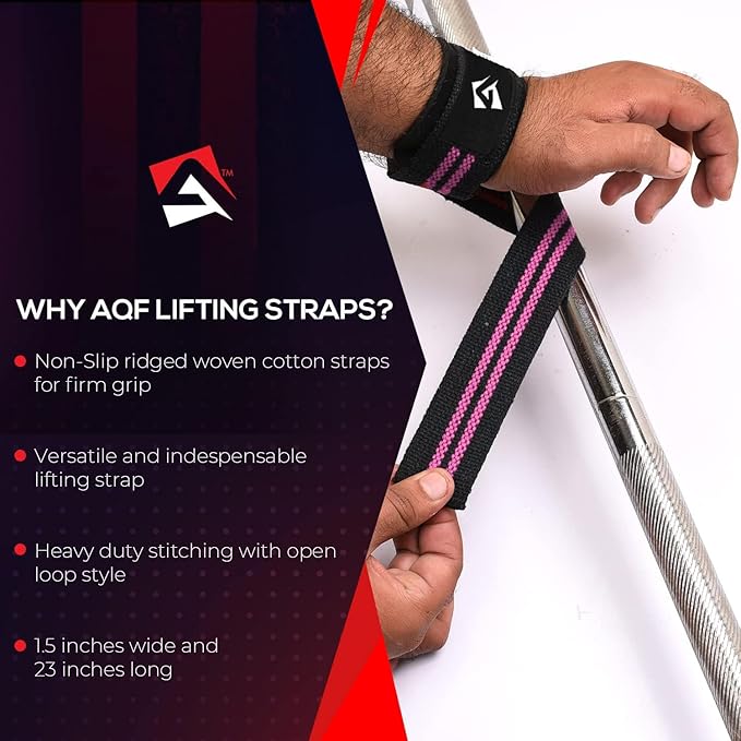 - SUPERIOR WRIST SUPPORT: AQF lifting wrist straps provide excellent gym wrist support, strengthening your grip, reducing stress on your forearms, and enabling more reps. Ideal for deadlifts, rows, pull-ups, weighted chin-ups, and other strength training & bodybuilding workouts.