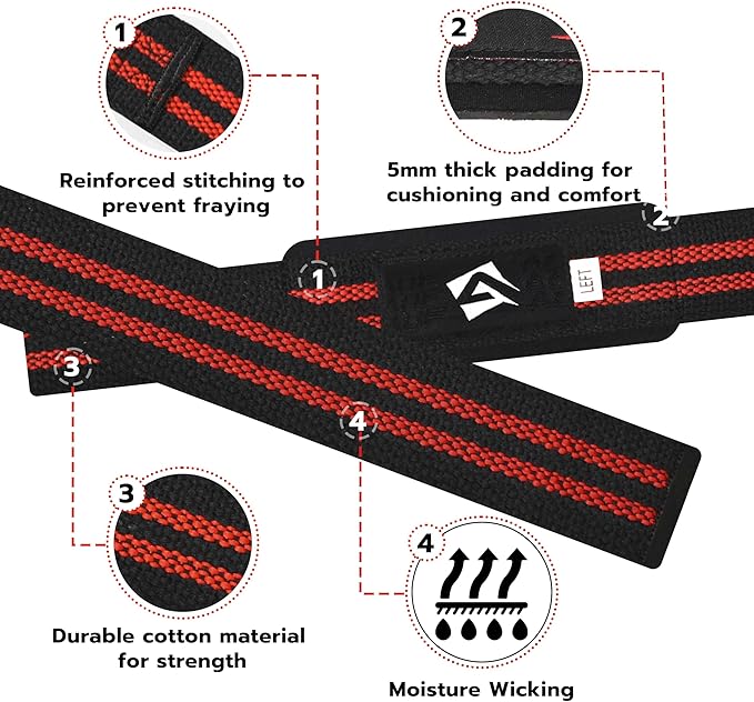 - SOLD AS A PAIR: These deadlift straps come as a pair, making them a cost-effective and essential training aid for powerlifting, deadlifting, and bodybuilding. Each hand strap is clearly labeled left and right, helping you achieve proper positioning for maximum efficiency.